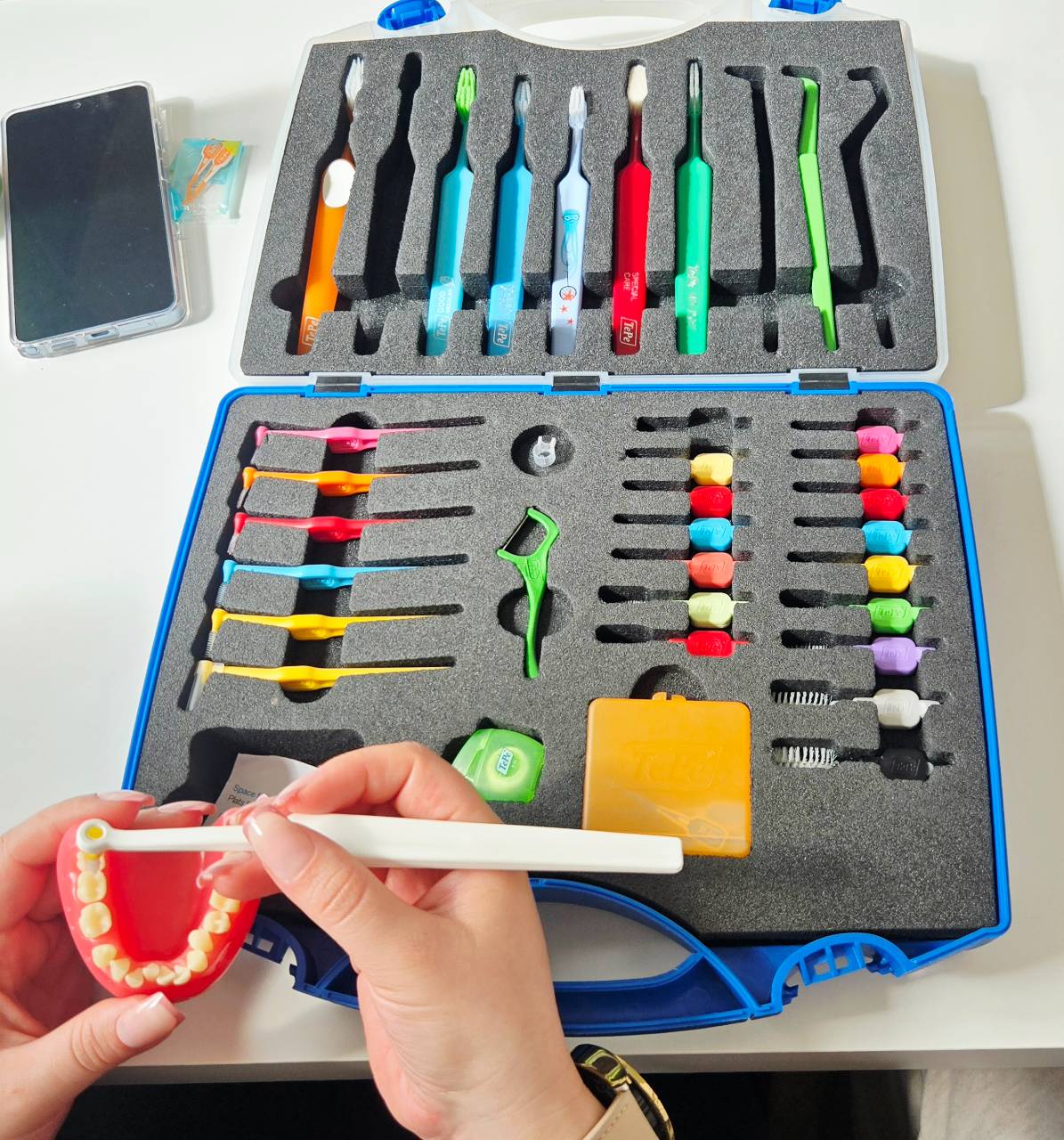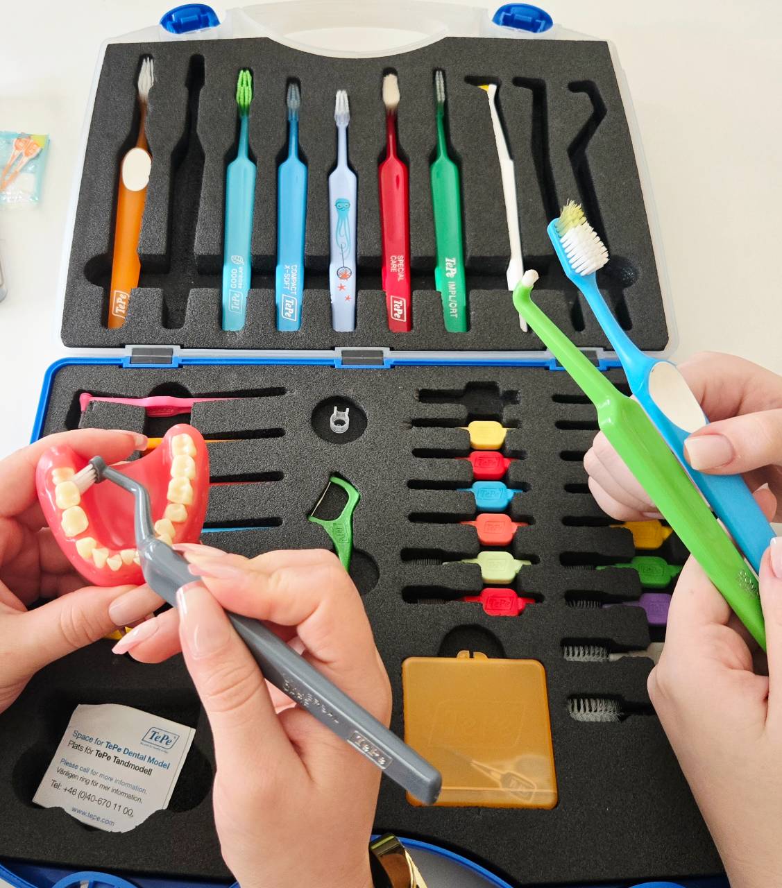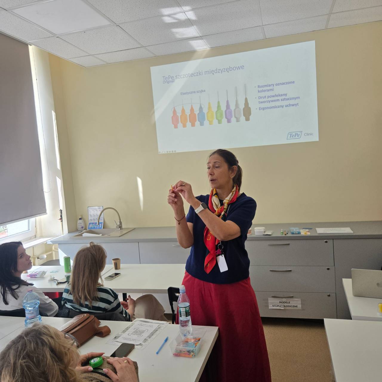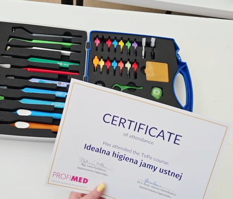 W części warsztatowej szkolenia słuchaczki nauczyły się dobierania odpowiednich narzędzi do profilaktyki stomatologicznej w przypadku pacjenta ortodontycznego, implantologicznego i protetycznego, zasad pracy z pacjentem periodontologicznym oraz prawidłowego instruktażu higieny jamy ustnej z użyciem produktów firmy TePe.